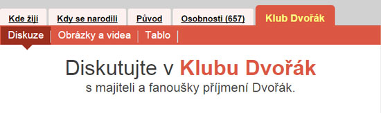 U každého příjmení najdete stejnojmenný klub, ve kterém můžete nechat vzkaz, diskutovat, či umístit fotku na tablo.