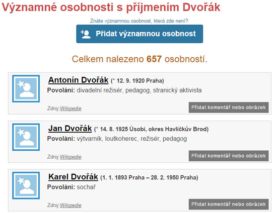 Víte, jaké slavné osobnosti nosily vaše příjmení? Podívejte se a případně přidejte další!