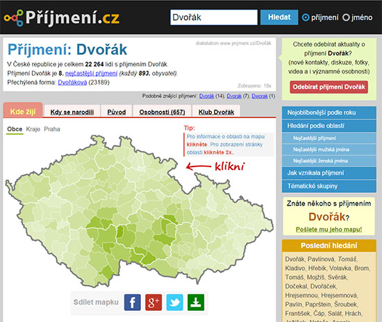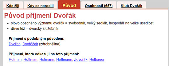 Například na všeříkající adrese www.prijmeni.cz/Dvořák najdete vše o příjmení Dvořák.