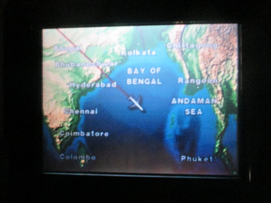 Cesta letadlem byla asi dost pohodová. Říkali ti, co létají často. Já prožívala hrůzu s každým zhoupnutím letadla a že jich skutečně pár bylo. A to už vůbec nemluvím o tom, že na křídlech cosi bliká, tudíž jsem nabyla dojmu, že hoříme. Také informační obrazovka zabudovaná do zad sedačky přede mnou mi absolutně nepomáhala. Já skutečně nepotřebuji vědět, že jsem zhruba 11 kilometrů vysoko, ani že je právě venku mínus padesát či šedesát. Já totiž nesnáším v zimě ani mínus deset. A samozřejmě obrazovka poctivě hlásila jakýkoli pokles, stoupání, zrychlení či zpomalení, což ostatní asi hodně bavilo (soudě podle toho, jak upřeně obrazovku sledovali), nicméně u mě tomu bylo právě naopak. Výběr filmů a pohádek také nebyl jaksi to pravé ořechové. Nezbylo tedy než informace poslat za temnou obrazovku a začít přežívat let.