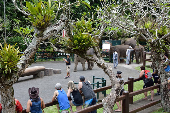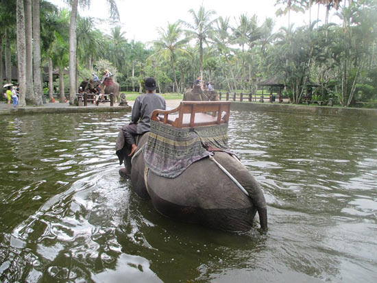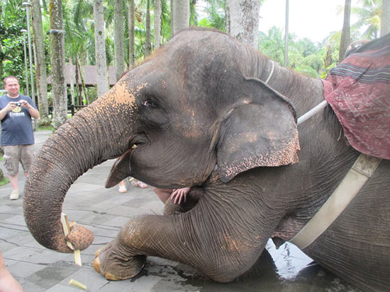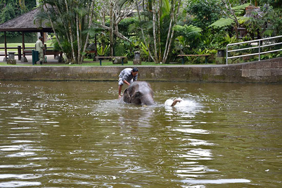 Specialitkou Bali jsou zvířá(t)ka o dost větší - sloni. Na Bali je mají na jediném místě, a to ve sloním parku a je jich celých 31! Prostě 31 slonů na Bali. Jsou dovezení z Jávy a jediné mládě (to je ten 31. člen) se narodilo už na Bali. Jinak na Bali žádní sloni nejsou. Elefant park je bezva zábava pro cizince, jinak byznys a obživa pro místní. Koukali jsme na neskutečně dokonalou organizaci celého parku, všech výprav a vyjížděk. To je v Asii, kde je všem všechno jedno, něco neskutečného, nepředstavitelného a hlavně nečekaného. Tam jsem si připadala jak Alenka v říši divů, nebo spíš za zrcadlem, protože to bylo poprvé, co něco fungovalo jako švýcarské hodinky s tím rozdílem, že tu opět nikdo žádné hodinky neměl a nebylo přesně vidět, kdo a jak tahá za nitky, aby se nic nikde nezaseklo. Zajímavá zkušenost. Takže když potřebují peníze z turistů, najednou všechno jde a funguje! Už dopředu jsme ale byli upozorněni, ať mírníme své nadšení a nedáváme příliš vysoké spropitné - dýška, chápete. Zato já nechápala proč? Vysvětlení je prosté a jistě byste na něj přišli. Já nepřišla, takže mi bylo vysvětleno, že místní by potom za méně nechtěli pracovat. Hm, zákon nabídky a poptávky tu funguje jinak a vládně těžké tržní hospodářství. Problémem totiž je, že tam, kde my jsme dali doporučených cca 5 Euro, bohatý zpravidla Rus dal 50. A jakýkoli Balijec, i ten, který na to nevypadal, asi počítat umí. Nicméně sloni jsou krásná zvířata s neskutečně drsnou kůží. Kdo hladil slona ví, ostatní budou asi stejně překvapení jako já. Není to žádné zvířátko na polaskání, žádný mazlík. A já se tak těšila! Škoda.