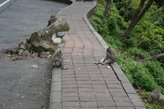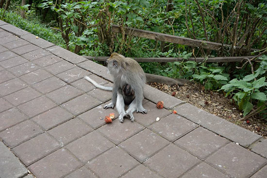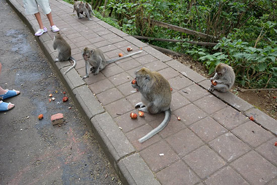 Zajímavým přivýdělkem jsou pro některé velmi podnikavé Balijce opice. Je to velmi jednoduché. U silnice najdete skupinku poloochočených opic, které vůbec netřeba vlastnit, a už vyděláváte. Najdete totiž strom a otrháte plody. Ideální je košík rambutanů. A pak je čekáte, opice čekají taky. Dřív nebo později přijede auto turistů a všichni, byť v různých jazycích, spustí: Jé opice! V tu chvíli přiskočí svižná domorodkyně a nabízí košík ovoce, že si je jako můžete nakrmit. No, kdo by odolal! Takže nejprve za deset plodů vyhandlujete za zhruba čtvrtinu ceny původní, aby vám pak místní babka za tento pakatel dala košík celý. Taková balijská hra.