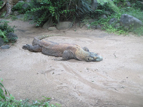 Plazí park byl také zajímavé místo. Jednoznačným favoritem byl opět dovezený varan komodský. Na Komody je to z Bali nějakou tu hoďku letadlem. Varan vypadal značně otráveně, nenamáhal se otevřít ani jedno oko a někteří nabyli dojmu, že to má už dávno za sebou. Nicméně tady nějaká cedulka "Plastic, made in China" chyběla, takže asi jen neměl svůj den. Vždyť koukat na potrhlé turisty všech barev s blikající elektronikou všech značek může třeba i zítra.