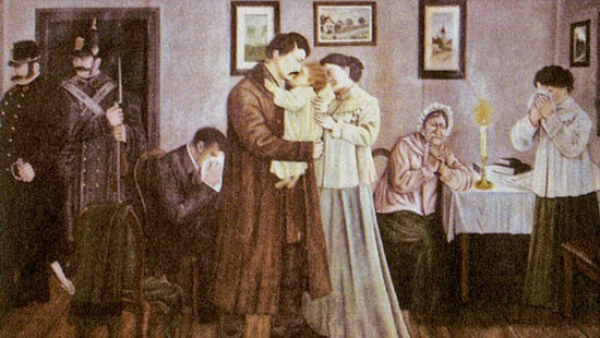 Další velký obraz byl také reprodukce jiného známého obrazu: Karel Havlíček Borovský se loučí s rodinou při deportaci do exilu v Brixenu. Srdceryvný obraz objímající se a plačící rodiny za policejní asistence, vyrvané ze spánku uprostřed noci. Milovala jsem ten obraz českého spisovatele, publicisty, prvního moderního novináře, básníka, literárního kritika a hlavně v nejmodernějším chápání slova bojovníka za svobodu slova. I o něm mohu zpívat starodávné i moderní písně: jako Havlíčku Havle nebo Spi Havlíčku v svém hrobečku. O recitování jeho Krále Lávry či Křtu Sv.Vladimíra, o Brixenských elegií nemluvě. Milovala jsem ho a byl mi vzorem.