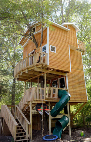 Jay Hewitt, domácí kutil ze státu Massachusetts, často vzpomíná na své vlastní dětství a schovávačky ve větvích stromoví. Proto se ještě před narozením svých vnoučat rozhodl, že jim postaví dům na stromě. Pustil se do práce a po jednom roce svůj vysněný domeček dostavěl. Ten nakonec má 3 patra a 5ti letý vnuk a 4 letá vnučka si jej náramně užívají.