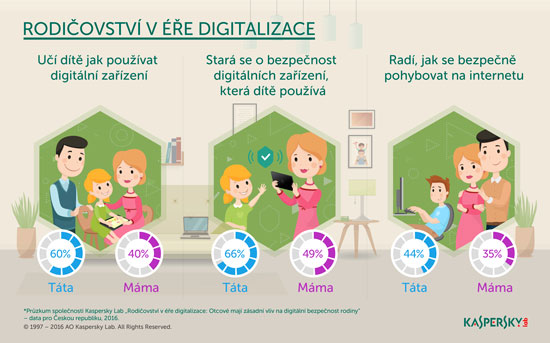 *Průzkum společnosti Kaspersky Lab "Rodičovství v éře digitalizace: Otcové mají zásadní vliv na digitální bezpečnost rodiny" - data pro Českou republiku, 2016.