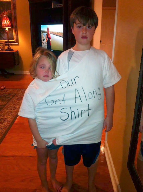 Když v této rodině dlouhodobě neustávaly půtky mezi bratrem a jeho mladší sestrou, navlékli je do společného trička s nápisem "Our Get Along Shirt", čili "Tričko, ve kterém se musíme vystát...". Jak tento trest zafungoval a jestli se opravdu vztah dětí vylepšil, následné prameny neuvádějí...