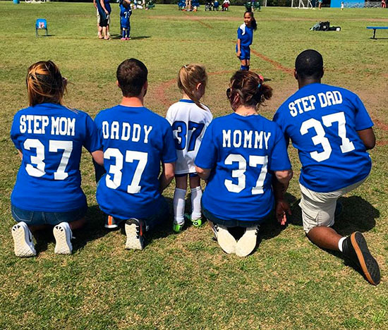 Dokladem je fotka z fotbalového utkání, kterou nedávno zveřejnili a která sbírá na sociálních sítí velká uznání. Na fotce se členové celé rozšířené rodiny představují jako fanoušci malé Maelyn, která hraje fotbalové utkání. Nápisy na dresech říkají vše - táta (daddy), máma (mommy), nevlastní táta (step daddy) a nevlastní máma (step mommy).