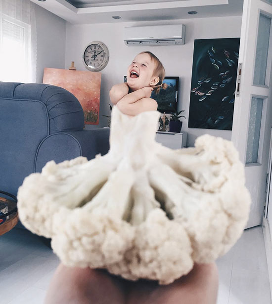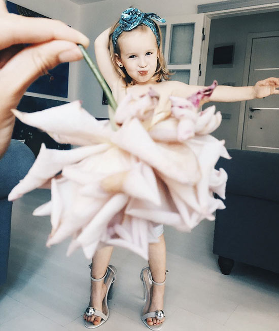 Výtvarnice Alya Chaglar je maminkou tříleté Stefani a spolu pravidelně na internetu představují nové modely šatiček. Využívají při tom možností perspektivy, kdy maminka drží kusy zeleniny, květin, ovoce ve vhodné vzdálenosti a obléká tím svoji dcerku jako do pohádky. Výborný nápad, kterému fandí tisíce sledujících fanoušků!