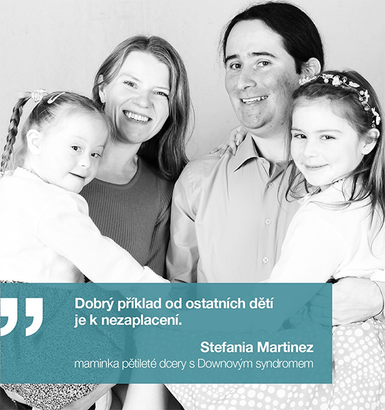 „Samozřejmě si nedělám iluze, že jsme stejní jako ostatní. I jako cizinci, i jako rodiče dítěte s Downovým syndromem jsme odlišní, a je to tak normální. Naše odlišnost může pak být i výchozím bodem k navázání kontaktu s dalšími lidmi. Takhle se můžeme v našem městě, které je pro nás všechny domovem, vzájemně obohacovat. A tak je i zcela přirozené, že si Anička v tomto společném prostoru nejen hraje na hřišti, jezdí na odrážedle, nakupuje s maminkou v supermarketu a na sobotním trhu, ale také se vzdělává společně s dětmi ze svého okolí,“ vysvětluje Stefania Martinez svůj otevřený postoj k různorodosti, kterou vnímá jako obohacení pro všechny.