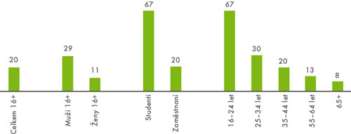 Videohry hraje a stahuje přes internet 20 % Čechů. Jde hlavně o mladé lidi, častěji muže. U starších ročníků obliba této zábavy klesá.