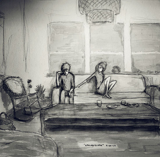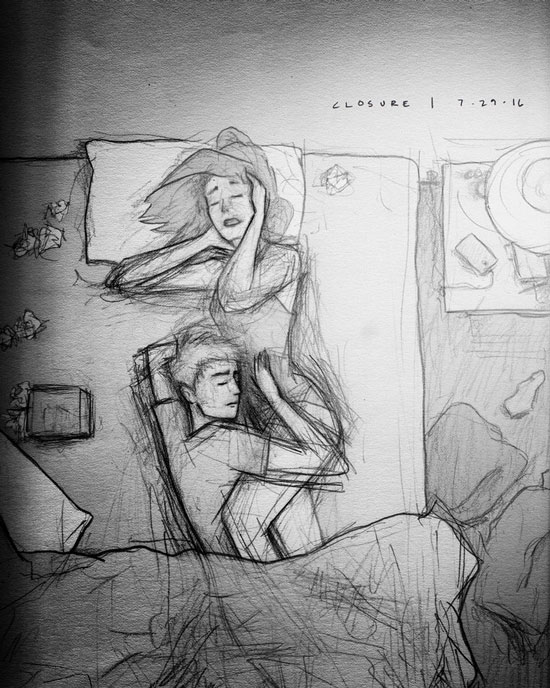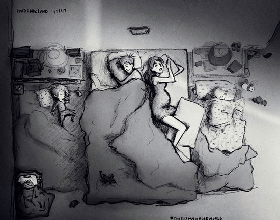Už dlouhé roky výtvarník Curtis Wiklund dokumentuje momentky ze života své rodiny prostřednictvím skic. Jeho výjimečné kresby jsou plné emocí a lásky k jeho ženě Jordin a dvěma synům. Letos v březnu očekávají narození dalšího potomka, poté co prošli nelehkým obdobím a dvakrát během těhotenství o dítě přišli. Své kresby nyní Curtis uspořádal v krásné knížce Us (My), kterou si stejně jako jeho kresby můžete koupit na jeho stránkách.
