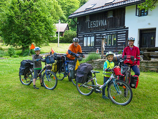 Těchonín, 12. června 2016. Stojíme na prahu skoro tři tisíce kilometrů dlouhé cesty a v hlavě se mi honí spousta myšlenek. Neděláme chybu, že spíš než na bezpečné cyklostezky západní Evropy otáčíme řídítka směrem na východ, kde nevíme, co nás může čekat? Snad ne. Už je vše rozhodnuto, a na poslední chvíli nejde měnit. Zamknuli jsme dům a šlápli do pedálů vstříc dobrodružství. My čtyři. Já, táta Luděk, Víťa 9 let, Šárka 7 let.