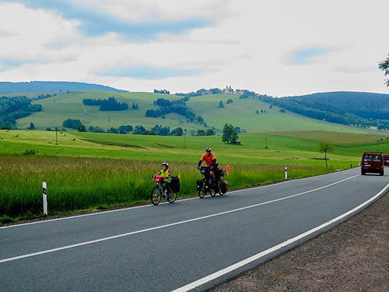 Přes Polsko se cykloturistům jezdí dobře. Obchůdky bývají v každé vesnici, což nás baví, protože nemusíme tahat velké zásoby. Všude prohodíme pár slov, často dostaneme pozvání na kafe. Při jedné nečekané průtrži mračen, kdy jsme byli durch mokří, ještě než jsme na sebe stačili hodit pláštěnky, na nás zuřivě od jednoho domku mávala mladá žena. "Honem, pojďte se schovat!" Byla doma sama, uvařila kafe, donesla sušenky. Neznala nás, na kole ani jinak nikdy necestovala. "Bylo mi vás v tom slejváku líto," zdůvodnila svoji laskavost.