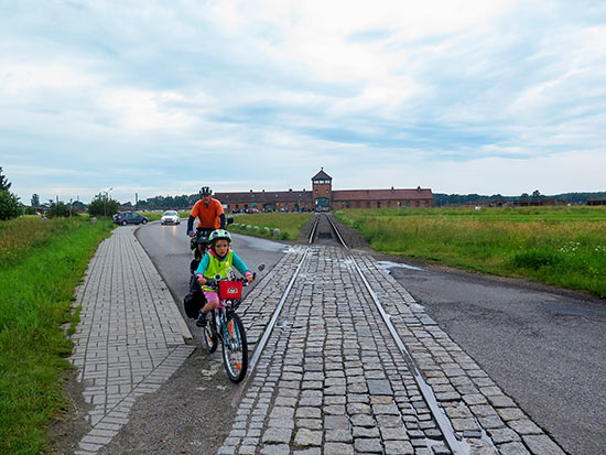 Při plánování trasy na mapě se oči zastavily na místě s názvem, ze kterého mrazí. Šlo o Osvětim. Dlouho jsme váhali. Jet - nejet? Měli jsme jistotu, že s dětmi na prohlídku bývalého koncentračního tábora určitě jít nechceme, ale toužili jsme alespoň projet kolem, uvidět. Vyšlo to na pošmourné odpoledne. Přijížděli jsme od jihozápadu, vysoký plot s ostnatým drátem se táhl snad kilometr daleko. "Maminko, co to je?" nemohly si nevšimnout děti. Jak jim vysvětlit, co to byly koncentrační tábory? K čemu doopravdy sloužily. V Osvětimi ani nemusíte vejít dovnitř, samotný plot a několik dřevěných domků za ním bohatě stačí k tísnivému pocitu. A když jsme přejížděli koleje, jež ústily v bráně, kterou se do tábora dostaly statisíce lidí, ale už ne ven, pocit sílil a dětské otázky pokračovaly. "Tady byli za války věznění lidé. Budete se o tom učit ve škole," odbyla jsem je, protože jsem nebyla přesvědčená, že chci jejich dětské dušičky zatěžovat něčím tak zrůdným. Ale věděla jsem, že to jednou bude nutné. Vzpomněla jsem si na nápis v návštěvní knize v podobném táboře v Mauthausenu, kde jsme byli dva roky předtím. "Please, stay open!" vepsal tam tenkrát někdo prosbu, která mi zůstala v hlavě dodnes. Zapomenout by se vážně nemělo, a tudíž bychom jednou měli děti informovat. Teď ale na to nebyla ještě ta správná chvíle. Najeli jsme na cyklostezku vedoucí napříč Osvětimí, což děti zaujalo a opět začaly vesele švitořit.