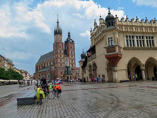 Krakow je asi nejnavštěvovanějším polským městem. Leží na řece Wisle a k nejznámějším památkám patří hrad Wawel nebo hlavní náměstí, nazvané Rynek glówny. Na kole s dětmi se velká města projíždějí špatně. Nikdy nevíme, co dřív. Jestli hlídat v hustém provozu děti, fotit památky nebo řešit mapu, zda jedeme správně. Od Wieliczky sice vede cyklotrasa, a dalšími stezkami jsou lemované břehy Wisly, ale přesto jsme si oddechli, když jsme město měli za sebou. "Nebylo to špatné, ale asi se mi víc líbila Wroclaw," zhodnotila jsem město s plnou pusou v restauraci KFC na kraji Krakowa, kam jsme s dětmi zašli oslavit průjezd velkoměstem. Děti totiž restaurace tohoto typu milují a my jim je jako odměnu, za to jak pěkně každý den šlapou, rádi dopřejeme. A protože možnost navštívit další mekáč nebo KFC nás čeká v nedaleké Čenstochové, je to pro ně motivace k další jízdě.
