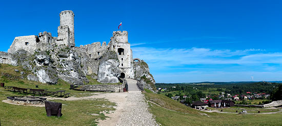 Jenže mezi Krakovem a Čenstochovou leží kraj, který rozhodně nechceme jenom profrčet. Polský král Kazimír Veliký se zde totiž zasloužil o důmyslný systém hradů, chránících nejen obchodní stezky, ale i polskou hranici proti nájezdům z Českého království. Kombinace prastarých hradů postavených na vrcholcích bělostných vápencových skalisek a mírně zvlněná krajina daly vzniknout turistické Stezce orlích hnízd (Szlak Orlich Gniazd). Tato pěší trasa v délce 169 kilometrů spojuje nejkrásnější hrady, zříceniny a jeskyně, a je nejstarší dálkovou turistickou trasou v Polsku. Právem patří k těm nejhezčím. Existuje i cyklo varianta této stezky, Jurajski Rowerowy Szlak Orlich Gniazd v podstatě kopíruje pěší trasu v délce 190 kilometrů, jen musí cyklista počítat s tím, že některé lesní úseky jsou díky písečnému podloží s naloženým kolem nesjízdné. Tyto úseky však lze ve většině případů objet po asfaltových silničkách. Ani my jsme netrvali na přesném dodržení této trasy. Poté, co jsme několikrát zabředli do hlubin písečných cest, na kterých došlo k nejednomu pádu, nechtěli jsme děti víc týrat. "Hlavně ať nemineme ty nejhezčí hrady, jedno kudy se k nim dostaneme," rezignovali jsme na vytyčenou cyklotrasu. Na silnicích mnoho aut nejezdilo a děti dokazovaly každý den, že se s nimi už nemusíme bát jezdit po normálních komunikacích.