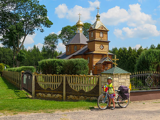 "Kde jste, už jsme vás čekali před týdnem," přivítala nás Leona s manželem a čtyřmi dětmi. Že je to k nim přesně tisíc kilometrů a že to na kole jaksi - navíc s dětmi - nějakou dobu trvá, si asi neuvědomila. A následovalo přijetí, za jaké by se nemuseli stydět ani na Balkáně. Měli jsme se nádherně. Čekala nás teplá večeře, sprcha a pračka. Já si konečně po 14 dnech umyla vlasy. Už mě trochu začínaly svědit. Ráno po snídani s námi Leona a některé děti zajely na nedalekou Grabarku, významného místa pravoslavné církve v Polsku, kde jsme si načepovali do našich lahví svatou vodu.