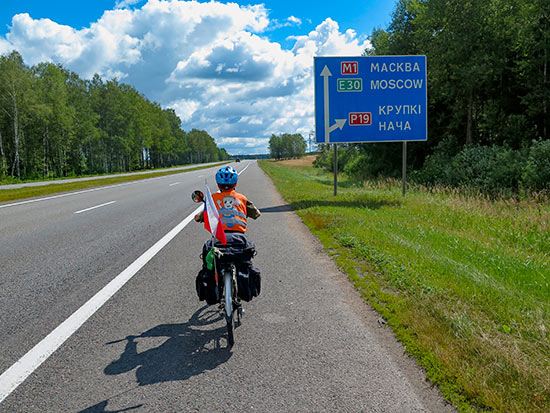 Jezdíme spolu s Luďkem už přes patnáct let. Ještě nikdy jsme si na expedici neudělali den volna. Hlavně moje máma nás občas naváděla: "Až budete u toho moře (nebo někde jinde, v závislosti na tom, kam jsme jeli), dejte si pár dní pauzu." Ale to my neumíme. Ještě nikdy se nestalo, abychom každý den nenasedli na kolo, a kousek se neposunuli, byť mělo jít třeba jen o 20 km. Nyní poprvé jsme měli volno, poprvé jsme si užili tří dnů bez kola. Nemůžu ale říci, že bychom si odpočinuli. Spíš naopak. Vypadnutím z režimu se ozvala únava a možná i lenost. A hlavně obavy z výjezdu ze Smolenska. Luděk dlouho pátral v mapě, až našel variantu, kdy jsme se poměrně elegantně městem propletli a brzy ho měli za sebou. Zmizela auta a my mohli konečně svobodně vydechnout.