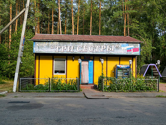 A pak už to bylo jenom kousek. Poslední ruská vesnice, poslední Lenin, a najednou jsou před námi hranice. Jmenuje se to tu Tři sestry. To jako mají být Rusko, Ukrajina a Bělorusko. Zašlá sláva sesterství je však vidět už na první pohled.