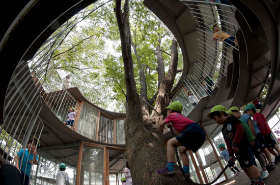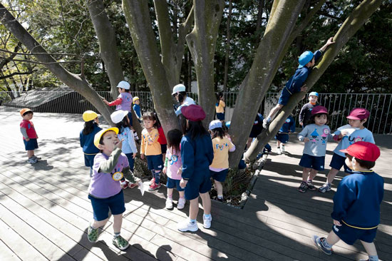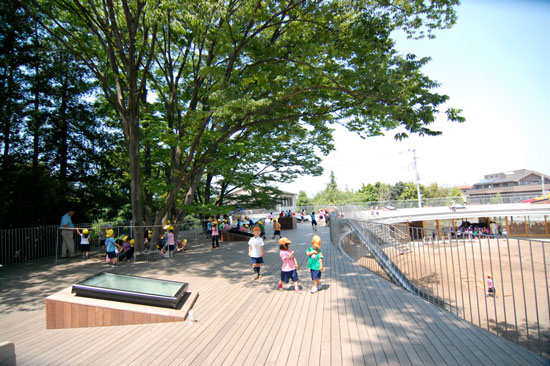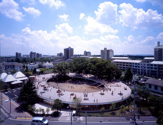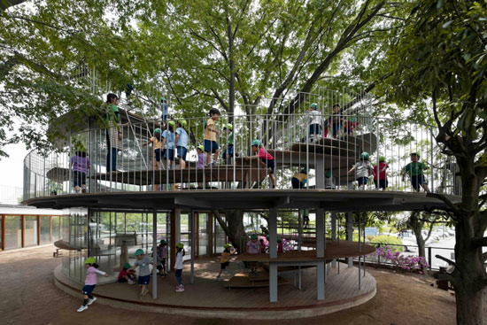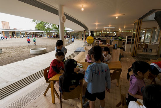 Mnoha cenami ověnčenou školku Fuji Kindergarten v Tokiu navrhlo architektonické studio Tezuka Architects. Montessori školka, která byla otevřena již v roce 2007, má podobu dvou kruhů - prstencová střecha slouží jako hřiště, po kterém mohou děti do nekonečna běhat. Prostor dvou úrovní umožňuje dětem volně se pohybovat, zkoumat a objevovat prostředí. Školka nemá žádná obvyklá herní zařízení, mezi úrovněmi je možné se přemístit například po stromech.