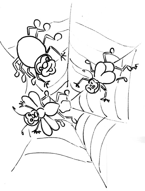 | Pavouk souká pavučinu, volá mušky na hostinu. | klek sedmo (v kleku sedíme na patách), předpažit - kruhy rukama |