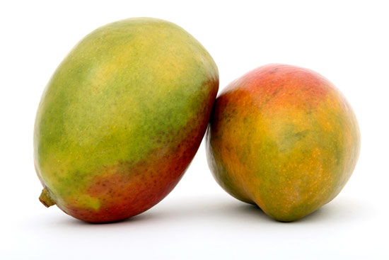 Plody manga jsou poměrně velké, mohou vážit až 1 kg (v našich obchodech váží spíš méně). Mají velmi tuhou slupku a uvnitř dužiny je uložena velká plochá pecka, která se – na rozdíl od pecky z avokáda – velmi špatně odděluje, protože je srostlá vlákny s dužinou.