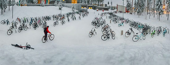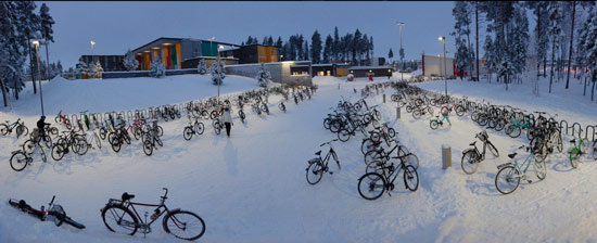 Pekka Takhola je odborníkem na urbanistiku a koordinátor rozvoje cyklistiky ve finském Oulu. Před několika dny publikoval na internetu fotku svého města, která ukazuje parkoviště před jednou ze škol v době, kdy je venku -17 stupňů Celsia. Doprava dětí do školy na kole je zde brána jako normální a zdravá věc. Pekka ve svvém tweetu píše: "1000 z 1200 dětí v této škole jezdí v zimě na kole, zbytek na lyžích, odstrkovacích sáňkách nebo autem".