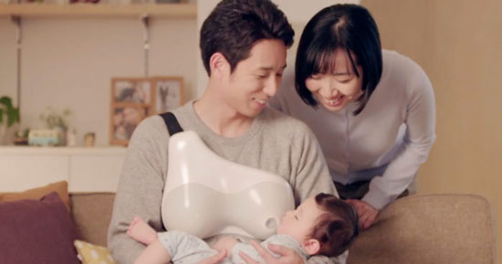 S dobrým nápadem přišla tento měsíc japonská společnost Dentsu na festivalu South by Southwest (SXSW) v americkém Austinu. Představila zařízení, které umožňuje otcům ještě více se zapojit do péče o miminko a budovat si úzké pouto s dítětem již od útlého věku.