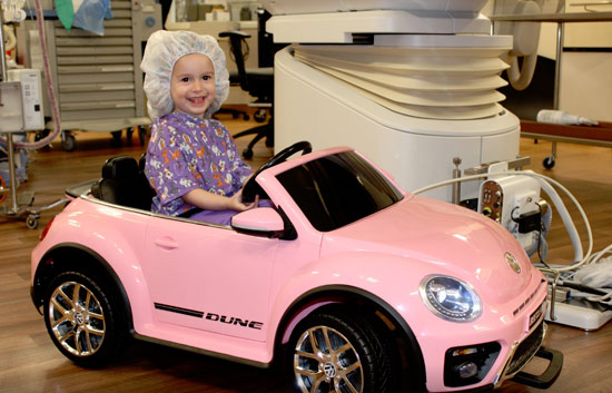 Aby potlačili stres a strach dětí z nastávající operace, dali jim k dispozici krásné elektroautíčko, které je dopraví až na operační sál. A co víc - děti si mohou vybrat ze dvou modelů - růžový VW Beatle bude nejspiš pro holky, černý Mercedes zase pro chlapce. Auta mohou děti řídit samy nebo je lze ovládat na dálku. Je samozřejmé, že mají funkční přední i zadní světla.