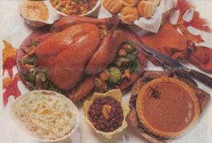 Pravou veceri s pecenym krocanem nabizeji pro ty, kdo varit nechteji, i vsechny restaurace. Uz cely mesic dostanete ve velkych obchodech s potravinami krocana zadarmo. No samozrejme, ze az po tom, co nakoupite za urcity obnos: v kramech, kde nakupuji majetnejsi obcane nejmin za 50 nebo 75$ , v obchodech, kam chodi nakupovat hlavne duchodci, pocetne rodiny, matky samozivitelky a sporilkove staci vydat 25$. Neprepocitavejte prosim, to nikam nevede (minimalni plat ve dnes pohybuje kolem 6 $ za hodinu).