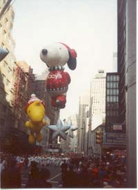 Organisuje ho jiz tradicne obchodni dum Macy's. Nad newyorkskymi mradodrapy se vzaseji nafukovaci postavy z Disneyovych filmu a televiznich serialu pro deti v neuveritelnych velikostech. Kraceji Americany milovane uniformovane dechovky a majoretky z celych Spojenych statu, v kocarech a alegorickych vozech( take neuveritelnych velikosti )se vezou hvezdy z televiznich serialu, kralovny krasy a politikove. Dav na ne pratelsky pokrikuje. Mela jsem to stesti, ze na nasem chodniku stala velka znalkyne serialu a hvezdneho sveta, a tak mi vzdycky vysvetlila, kdo je ten mladik, ktery ji uvadi do frenetickeho nadseni.