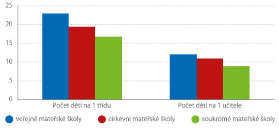 Přestože soukromé mateřské školy tvoří stále relativně malou část předškolních zařízení, jejich počet se každoročně zvyšuje. Ve školním roce 2018/2019 jich bylo pětkrát více než před 10 lety. Nejvíce soukromých mateřských škol, a to jedna čtvrtina, se nachází v Praze a navštěvuje je 3,5 tis. dětí. Naopak nejméně soukromých školek bychom našli v Pardubickém kraji (jen 6 školek, 1,0 %). Počet veřejných mateřských škol za posledních 10 let i přes narůstající počet dětí ve školkách vzrostl pouze nepatrně (+2,9 %). Zvyšující se kapacitní nároky se tak ve veřejných školkách projevily zejména zřizováním nových tříd (+18,7 %). Jedna veřejná školka měla průměrně na starosti více než dvakrát tolik dětí než ta soukromá.