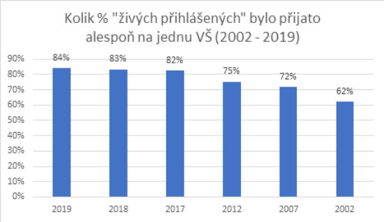 Někteří přihlášení uspěli u více příjímacích zkoušek. Každý uchazeč byl totiž přijat průměrně na 1,4 vysoké školy. Více než pět procent studentů se pak na podzim zapsalo na více než jednu vysokou školu.
