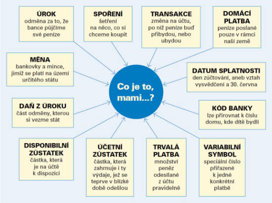 Základem je tedy trpělivé vysvětlování termínů užitých v aplikaci internetového bankovnictví. Že nevíte, jak jednoduše osvětlit dětem běžnou bankovní terminologii? Kdybyste náhodou zrovna neoplývali potřebnou dávnou kreativity, přinášíme vám pár tipů, jak některé pojmy nejmenším střadatelům přiblížit.