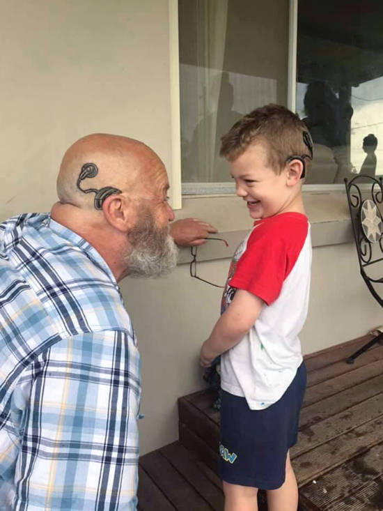 Děda si nechal vytetovat stejný ušní implantát jako jeho vnuk