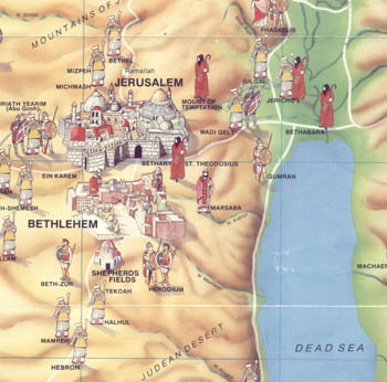 Betlém leží 12km jižně od Jeruzaléma.