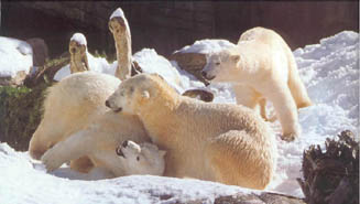 Takze nejen lednim medvedum do zoologicke zahrady, ale i detem do Wild animal park privezou hory umeleho snehu. Tem prvnim, aby se citili jako doma, tem druhym, aby v mnoha pripadech uvidely poprve, co je to snih a jak se na nem da radit. Libi se to jak medvedum, tak detem. Na kopcich v parku je nepredstavitelny naval.