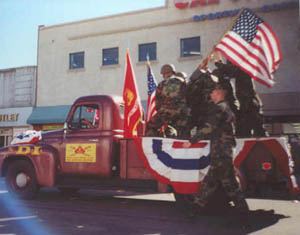 Ke kalifornske tradici patri take vanocni pruvody, ktera ma kazde vetsi mestecko a v San Diegu i jednotlive casti mesta. Letosni predvanocni cas je zvlast teply a tak je zvlast legracni, kdyz na jeho konci jede v potu tvare nabaleny Santa ... To, co jede pred nim je take pro nase chapani zcela nevanocni, receno jemne... Kralovny krasy, kovbojove, pochoduji vojenske kapely, jedou obrnena vozidla, zive obrazy charakteru zcela nemiroveho... Ale takova je tady tradice... Jen nam to pripada paradoxni. "Ozbrojene" casti vanocniho pruvodu sklizeji casto nejvetsi potlesk.