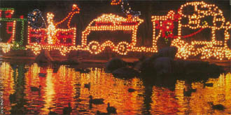 Festivaly svetel jsou ve vsech vetsich parcich, v botanicke zahrade a nejvelkolepejsi take v Wilde animal parku a pruvody osvetlenych lodi ve vsech pristavech. Na pobrezi sedi divaci kolem ohnicku, zabaleni do dek, maji vesely piknik a tleskaji nejkrasnejsim lodim, pokrikuji Merry Christmas, ti politicky uvedomelejsi Happy Holidays (i chanuka a kwanza jsou svatky svetel) . V Sea port villige, v pristavu uprostred mesta prijede Snata Claus na motorove lodce poprezni policie za doprovodu ohnostroje. V Misison Bay jede na nejkrasnejsi lodi, ktera je osvetlena tak, jakoby ji tahli sobi. V Legolandu prijede na specialnich motorovych sanich vyrobenych z legovych kostek, u nas v Carlsbadu prijel na starodavnem hasicskem voze (to tady jeho velmi oblibene vozidlo, je v barvach vanoc, cervene).