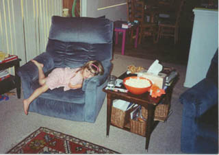 ![]() Dívání na pohádky po americku. S misou popkornu (bouchane kukurice) a pitim. Jako v kine! I jinak podle uvedeneho "navodu". Tata sedi v kresle vedle, co ho jen kus kouka a ja muzu koukat z kuchyne, ktera je za bilym barovym pultem, nebo si sednout k nim. |