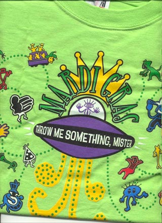 I v samotnem New Orlenas nebyvaji odpoledni pruvody tak preplnene, masky decetnejsi, hladina alkoholu jeste nedosahla vrcholu. A muzete si take zakricet: "THROW ME SOMETIG, MISTER"...Nebo si alespon koupit tricko s takovym napisem...je to jakesi heslo Mardi Gras...