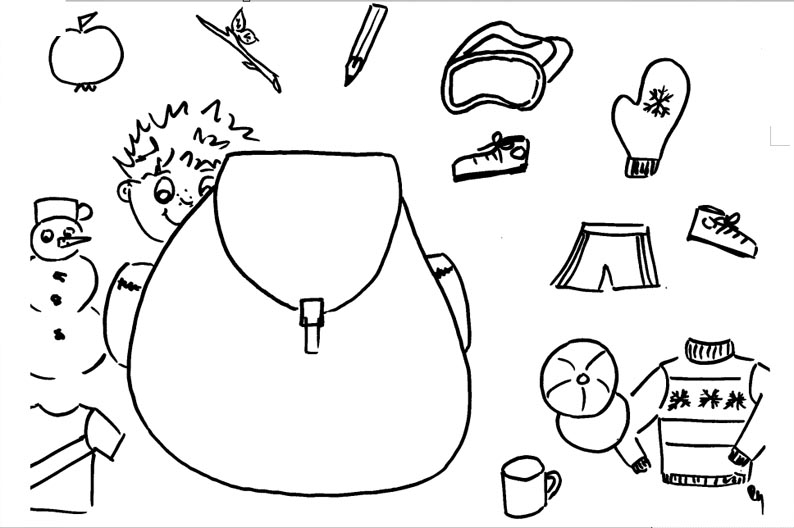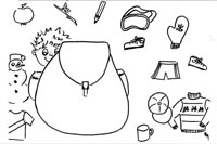 Zkuste vybrat z obrázků věci, které Áda potřebuje ke cvičení a "sbalit" mu je do batohu (vystřihnout a nalepit):
