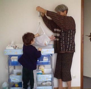 Po návratu domů k nám docházela každý den ošetřit naší malé pupíček dokud neodpadl. Také jí vážila, a poradila s těmi mnoha drobnostmi, které mě trápily a na které bych se u doktora nikdy nezeptala. Ani by nebyl čas. Červené skvrnky na hlavě, roztřesená bradička po koupání, trošku pokřivená nožička, vyrážka za ouškem, lekavost , spinkání jen na jednom boku, rozbíhající se očíčka naší malé. A ty vlásky -nebude ona nakonec zrzka? A pokaždé si chvíli hrála i s naším starším synem, aby si nepřipadal odstrčený. Tím si hodně získala mé sympatie.