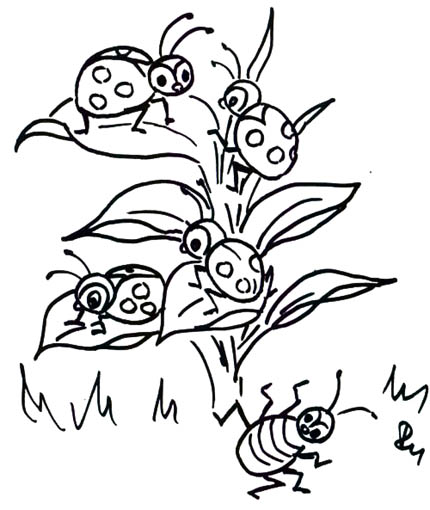 Pro úplně malé děti můžeme při říkance "cvičit" svými prsty (dlaň s prsty = brouček) a hrát takové divadélko (prsty znázorňují chůzi broučka - rychle, pomaleji,otočení ruky dlaní vzhůru - leží na zádech….jistě budete mít mnoho nápadů sami, jak ztvárnit děj říkanky).Ty větší děti procvičí orientaci v prostoru, koordinaci pohybu, reakci na povel a odraz. Dospěláci potom hlavně paměť.