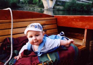 Ne jenom jako ve vaně, ale na opravdický lodi! Už se moc těším - voda hezky šplouchá a kolíbá a kolíbá a kolíbá... A taky tam bude sranda. Před měsícem mě máma začala přikrmovat a já jím hrozně ráda sama lžičkou. Teda - ne, že by se ty blafy, co máma vaří, daly jíst, ale docela fajn se patlaj. Takže po každém jídle nás obě máma svlékne, oblečení hodí do pračky, obě se vykoupeme, no a potom máma ještě vyčistí koberec a nábytek. A jak jsem si všimla, na lodi není ani pračka ani sprcha, tak jsem móóóc zvědavá, jak mě tam teda bude krmit. A to nemluvím o tom, že jsem holka zvědavá a kam můžu, tam vlezu. Jo, jo, užiji si spoustu legrace, až mě máma s tátou budou zachraňovat, abych se nám náhodou neutopila. Protože mě všichni máme rádi.