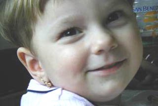 Vláčím v každé ruce jednu dívčinu, tašku přes rameno, rameno až u země, jdeme k autu. Kuba vláčí Laděnku v cestovním "vajíčku" (vzhledem k její váze a délce), je to už opravdu posilovací prvek, za který by se mistr z posilovny nemusel stydět, když tu Terka uvidí na druhé straně chodníku bernardýna. Krásně bílého s hnědými fleky a já ji hned přemoudře vysvětlila, že to je ten pejsek, co pomáhá lidem. Terka na to:"A kde má telátko?" Kuba málem smíchy upustil Ladu:"To není kráva, Terko, to je pes!!" (stejně si myslela své).