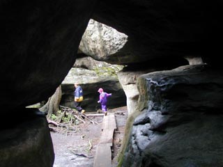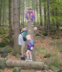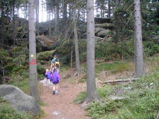 Po vybalení základních věcí v Machově, který se nám stal na 3 dny domovem a základním táborem v jednom, jsme vzali mapy,baťůžek a vyrazili.Obě děti (Lucie 7let a Lukáš 4roky) se už nemohly dočkat.Jen nás trošku cestou honily mraky a stále chtěly spouštět dolů kapky.Ale na nás si nepřišli.Šlapali jsme až k Bludišti, vyšplhali kolem Tuleně na Junáckou vyhlídku a kolem Sovího hnízda.