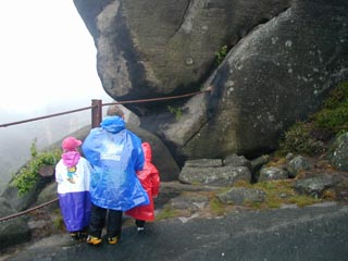 Ráno nás uvítalo deštěm a totálně zataženou oblohou.Meteorologové měli pravdu.pro ten případ jsme připravili nouzové mokré řešení.Po ranní návštěvě Náchoda, kde jsme zakoupili krásné EXPOpláštěnky (koho by doma napadlo, že bude pršet, když to hlásili už tři dny) a vydali se k chatě Hvězda.A protože nás optimismus neopouštěl a děti chtěli do skal, zdálo se nám, že vlastně ani neprší.Tak jsme se vydali na krátkou, ale terénně podstatně náročnější 7 km trasou na Supí hnízdo a Kovářovou roklí..Výhledy by mohli být krásné, ale neviděli jsme víc než nejbližší skály a bílou tmu.Pěkně promáchaní, ale šťastní, co jsme dokázali zdolat jsme se vraceli do základního tábora.Náš pan domácí nás příjemně překvapil rozehřátými radiátory a spoustou informací o okolí.Tak jsme šťastně uschli a hurá do posledního dne.