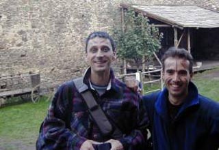 Než jsme slezli pár "žebravých" metrů, díval se na nás tak nějak přimraženě z druhé strany potoka pod Žebrákem."Já jsem tam zahučel po pás,"špitl. "No, ty se mi snad zdáš, ve dvanácti bych tě seřvala, ale ve třiceti,"děla Hanka "to je marný všechno!" To už se k nám hnala vesnická žena a hlasitě Iva litovala a hned:"Já Vám půjčím něco na převlečení, pojďte, nějaké staré hadry se u nás určitě najdou (dobrý člověk ještě žije!!!!)."Pomalovaný Bůvol" mokrý až k patě šel. Během dvaceti minut se k nám vracel jinoch v lakovkách tanečních sedmdesátých let, dívčích kalhotách končících u lýtek a do dáli vesnice zářili jeho fialové ponožky. "Kryjte mne", děl jen co se přiblížil a vesnická paní poslouchala salvy smíchu. Zaplať Bůh, že se mu nic nestalo a my se mohli nerušeně bavit na jeho účet (vzhledem k tomu, že mne odmítl vzít u Točníku zpět do auta kvůli pěticentimetrové šmouze od bláta na kalhotách působil teď dost paradoxně)."Takhle s námi chceš jí do hospody na oběd, to ani náhodou. Hele Ivo a kde máš mobil?", vychutnávala si již tak mrtvolného manžela Hanka. "No jo já tam měl mobil a kousek klobásy, co jsem si ještě schoval?", začal zjišťovat stav věcí.
